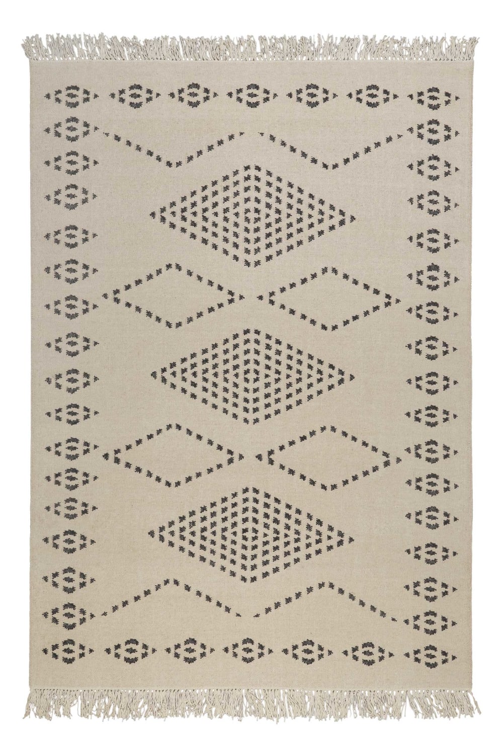 Green Loop Tapis kilim pure laine tissé main ethnique chic à franges 80x150 Gris 150x80x150cm