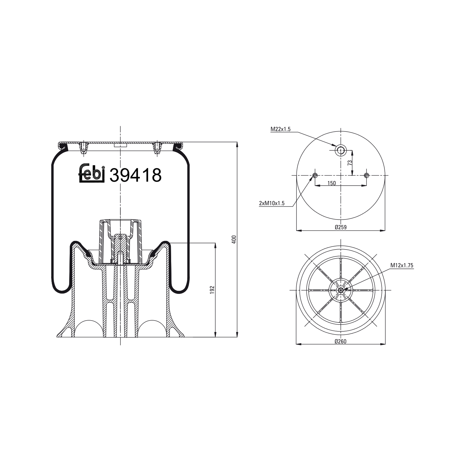 FEBI BILSTEIN Federbalg, Luftfederung 39418 Universal mit Kolben 260mm