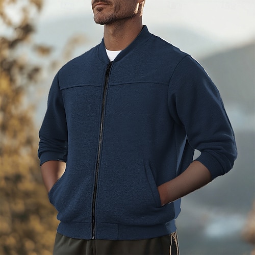 Per uomo Maglia Felpa con zip Felpa con zip intera Blu Blu denim Nero Vino Verde militare Colletto Mao Semplice Con zip Tasca Sport Outdoor Quotidiano Ferie Poliestere Streetwear Essenziale Casual
