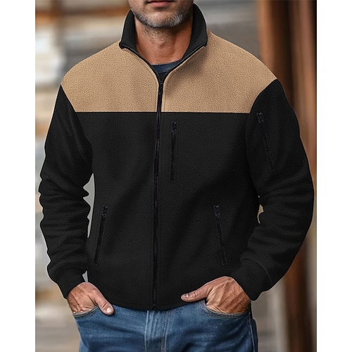 Per uomo Maglia Felpa con zip Felpa in pile Felpa con zip intera Nero Blu marino Verde Cachi Grigio Colletto Mao Blocco di colori Con zip Patchwork Tasca Sport Outdoor Quotidiano Ferie Poliestere