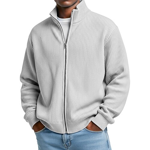 Per uomo Maglia Velluto a coste Felpa con zip intera Aalbicocca Rosso bordeaux Nero Bianco Verde chiaro Colletto Mao Semplice Testurizzato Sport Outdoor Casuale Quotidiano Streetwear Cool