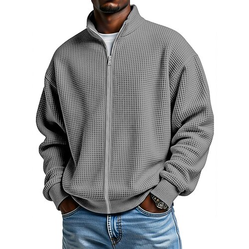 Per uomo Maglia Felpa a nido d'ape Felpa con cappuccio Maglione Felpa con zip intera Aalbicocca Nero Bianco Verde chiaro Verde militare Colletto Mao Semplice Testurizzato Casuale Quotidiano Sport