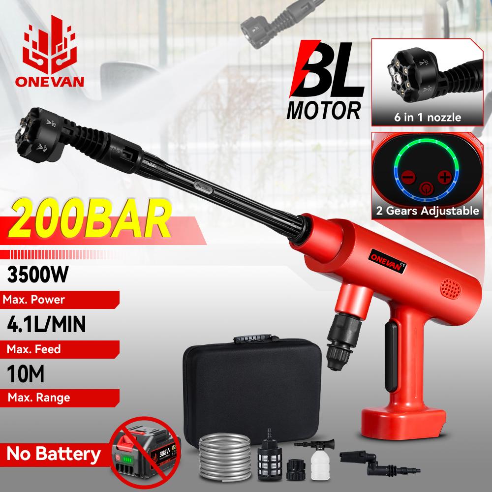 ONEVAN 6-i-1 Børsteløs Høytrykks Bilvaskerpistol 3500W 200Bar Trådløs Vannrenserpistol Elektroverktøy for Makita 18V Batteri Pin
