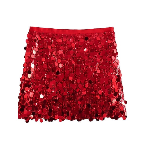 Per donna Elegante Vintage Moda Sexy Mini Vita media Gonne Semplice Paillettes Patchwork Micro-elastico Quotidiano Balli di fine anno Argento Ametista Nero Oro Estate Poliestere