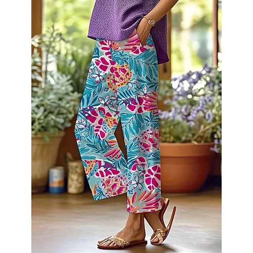 Pantaloni in lino simile da donna Pantaloni Dritti Vacanza Moda Streetwear Lunghezza intera Vita media Floreale Grafico Tasca Vita elastica Stampa Comodo Comfort Traspirabilità Inelastica Quotidiana