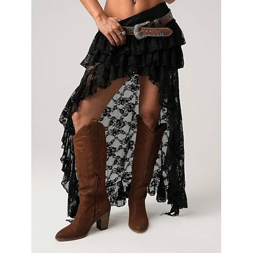 Per donna Gonna in pizzo Moda Sexy Casual Asimmetrico Vita media Gonne Pizzo Inelastico Quotidiano Spiaggia Aalbicocca Nero Bianco Estate Poliestere