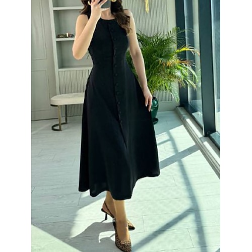 Per donna Abito Midi Abito Bianco Abito da laurea Vestito Casual Elegante Moda Moderno All'aperto Vacanza Uscire Vestibilità regolare Semplice Senza Maniche Girocollo Nero Bianco Marrone Blu scuro