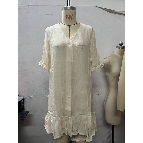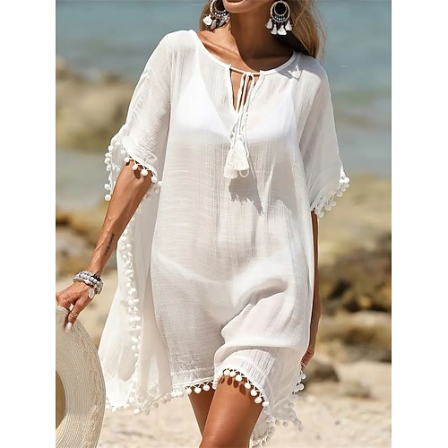 Per donna Mini Abito Abito Bianco Abito da Spiaggia Abito nero Copricostume Elegante Moda Classico Quotidiano All'aperto Spiaggia Vestibilità comoda Semplice Mezza Manica Scollo a V Nero Bianco Cachi