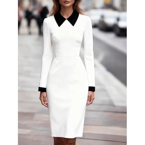 Per donna Abito al ginocchio Abito Bianco Abito da laurea Abito a Tubino Elegante Moda Moderno All'aperto Vacanza Uscire Taglia piccola Blocco di colori Manica Lunga Colletto a Camicia Nero Bianco