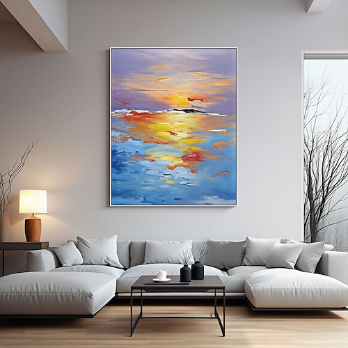 grande dipinto a olio dipinto a mano astratto colorato tramonto sul mare dipinto a olio su tela alba personalizzata soggiorno arredamento casa arte murale con mare strutturato