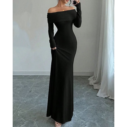 Per donna Abito Lungo Maxi Abito Abito nero Tubino Elegante Moda Moderno Quotidiano Ufficio Feste Vestibilità regolare Semplice Manica Lunga Senza Spalle Nero Bianco Rosa Vino Primavera Autunno