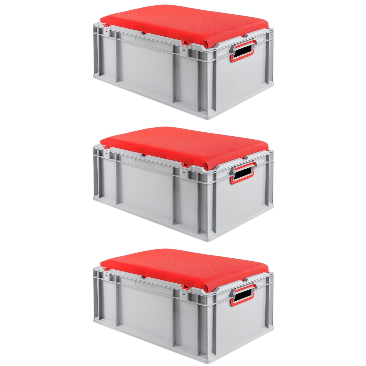 PROREGAL 3x Eurobox NextGen Seat Box Rot | HxBxT 26,5x40x60cm | 44 Liter | Griffe offen | Eurobehälter, Sitzbox