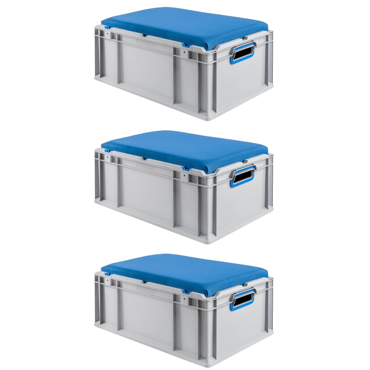 PROREGAL 3x Eurobox NextGen Seat Box Blau | HxBxT 26,5x40x60cm | 44 Liter | Griffe offen | Eurobehälter, Sitzbox
