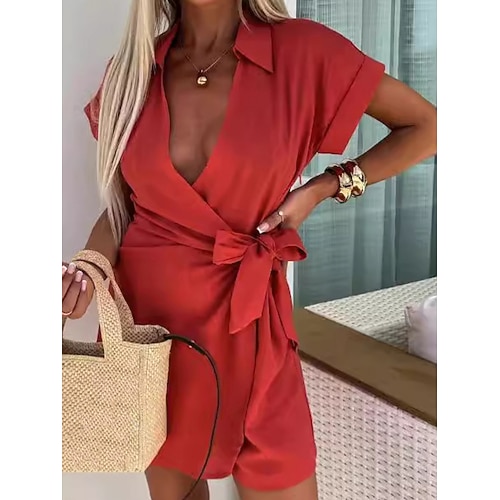 Per donna Tutina Elegante Tinta unica Manica Corta Pantaloncini larghi Scollo a V Patchwork Quotidiano Vacanza Vestibilità regolare Rosso Marrone Verde Estate