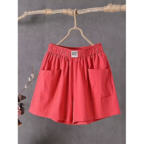 Per donna Pantaloncini in cotone e lino Pantaloncini Estivi Shorts da Spiaggia Pantaloncini larghi Vacanza Essenziale Casual Corto Vita Alta Semplice Tasca Fascia Elastica Comodità Asciugatura Rapida