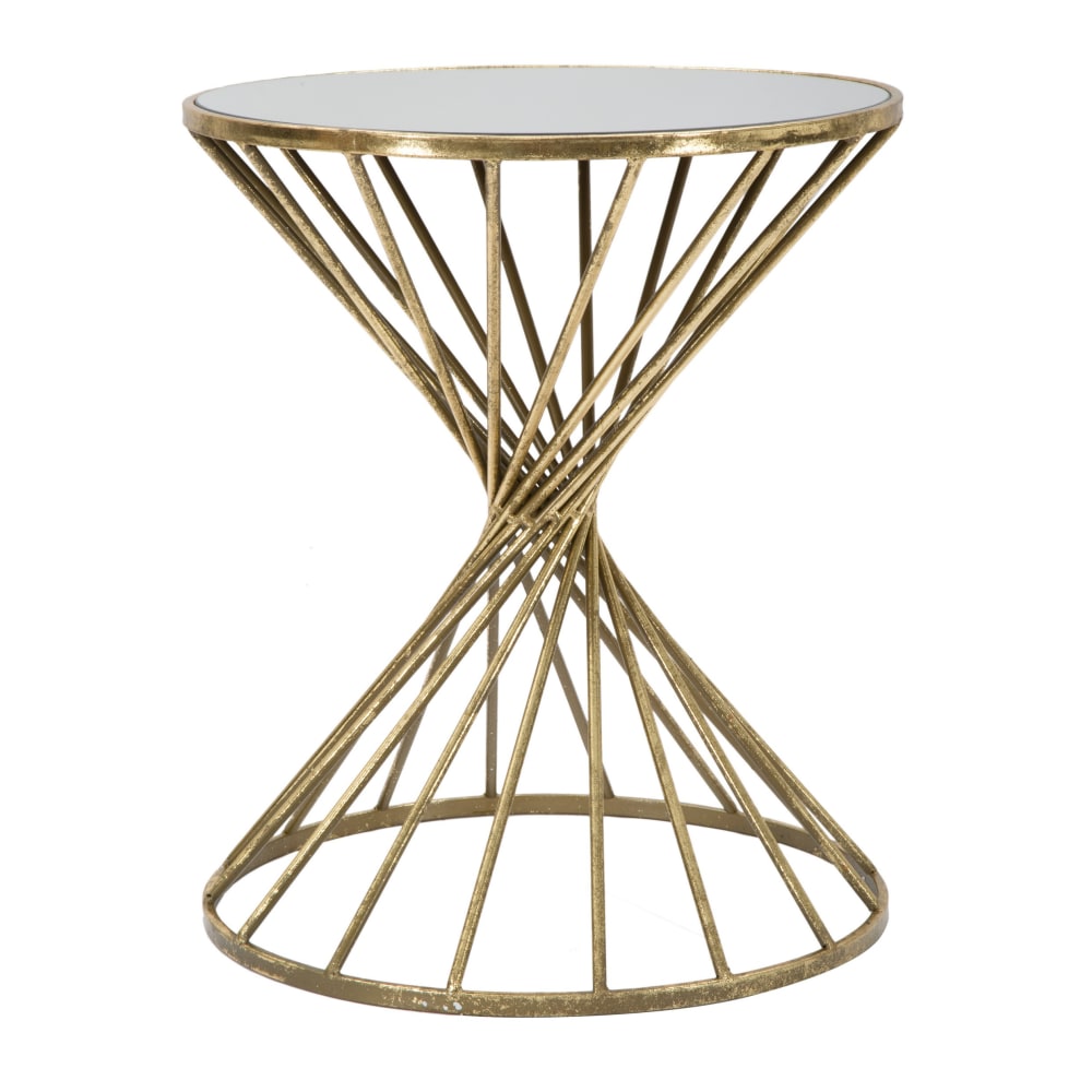 Tavolinetto in metallo dorato con piano a specchio Ø cm 42x50