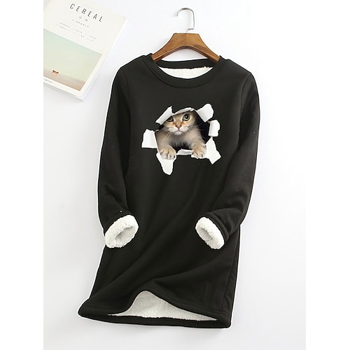 Per donna Pigiama felpato foderato in pile Gatto Caldo Morbido Manica Lunga Girocollo Top lunghi Casuale Sportivo Nero Giallo Rosa Rosa scuro Rosso Autunno Inverno