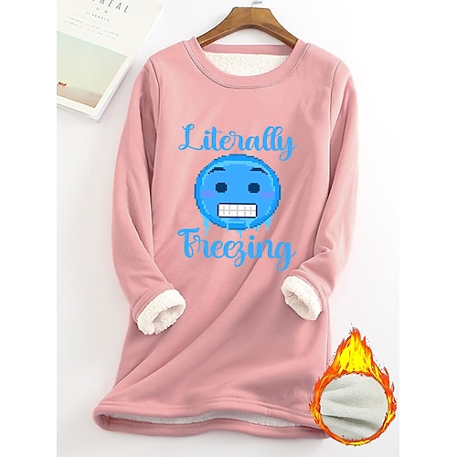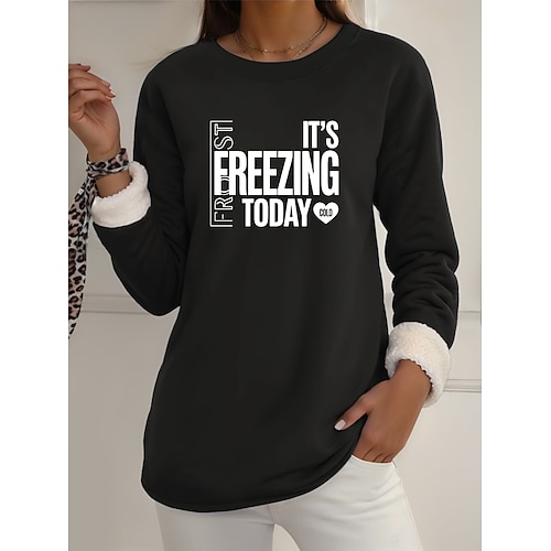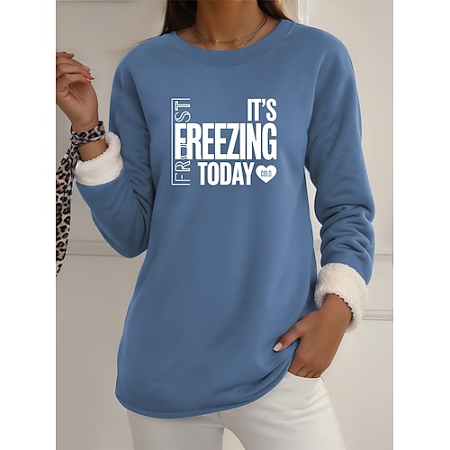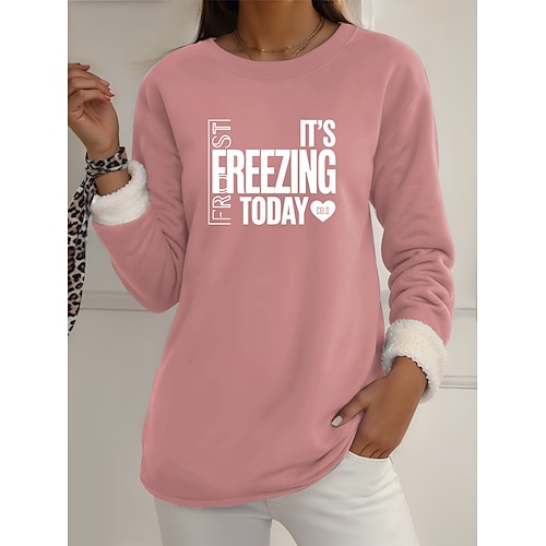 felpa da donna con fodera in pile, pigiama, pullover, sì, ho freddo, lettera, streetwear, casual, manica lunga, girocollo, top normali, street, vacanza, tasca, stampa, nero, rosa, blu, grigio chiaro