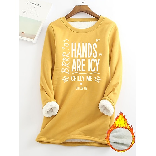 Per donna Pigiama felpato foderato in pile Felpa Pullover Pullover Felpe Lettera Caldo Streetwear Casual Manica Lunga Girocollo Top Regolari Casa Abbigliamento Quotidiano Casuale Stampato Nero Giallo