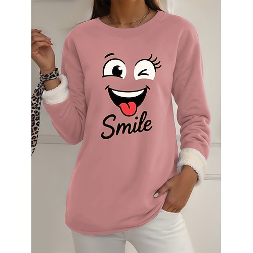 Per donna Pigiama felpato foderato in pile Felpa Pullover Pullover Felpe Grafico Caldo Streetwear Casual Manica Lunga Girocollo Top Regolari Casa Abbigliamento Quotidiano Casuale Stampato Nero Rosa