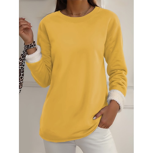 Per donna Pigiama felpato foderato in pile Felpa Pullover Pullover Felpe Grafico Caldo Streetwear Casual Manica Lunga Girocollo Top Regolari Casa Abbigliamento Quotidiano Casuale Stampato Nero Giallo