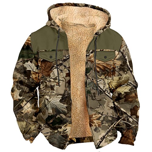 Per uomo Felpa con cappuccio Felpa con cappuccio a zip intera Felpa con cappuccio in pile Felpa con cappuccio foderata in pile Felpa con cappuccio mimetica Verde militare Blu Grigio scuro Beige Con