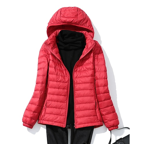 Per donna Giacca Piumino Caldo Confortevole Cerniera Tasca Moda All'aperto Semplice Abbigliamento quotidiano Uscire Weekend Cerniera Regolare Con Cappuccio Vestibilità regolare Manica Lunga Capispalla