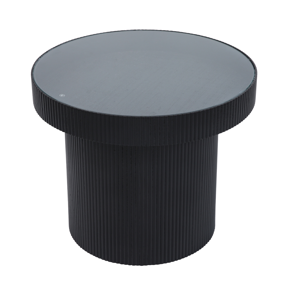 SVITA MIGUEL Beistelltisch mit Glas Coffeetable Couchtisch klein rund Schwarz/Schwarz