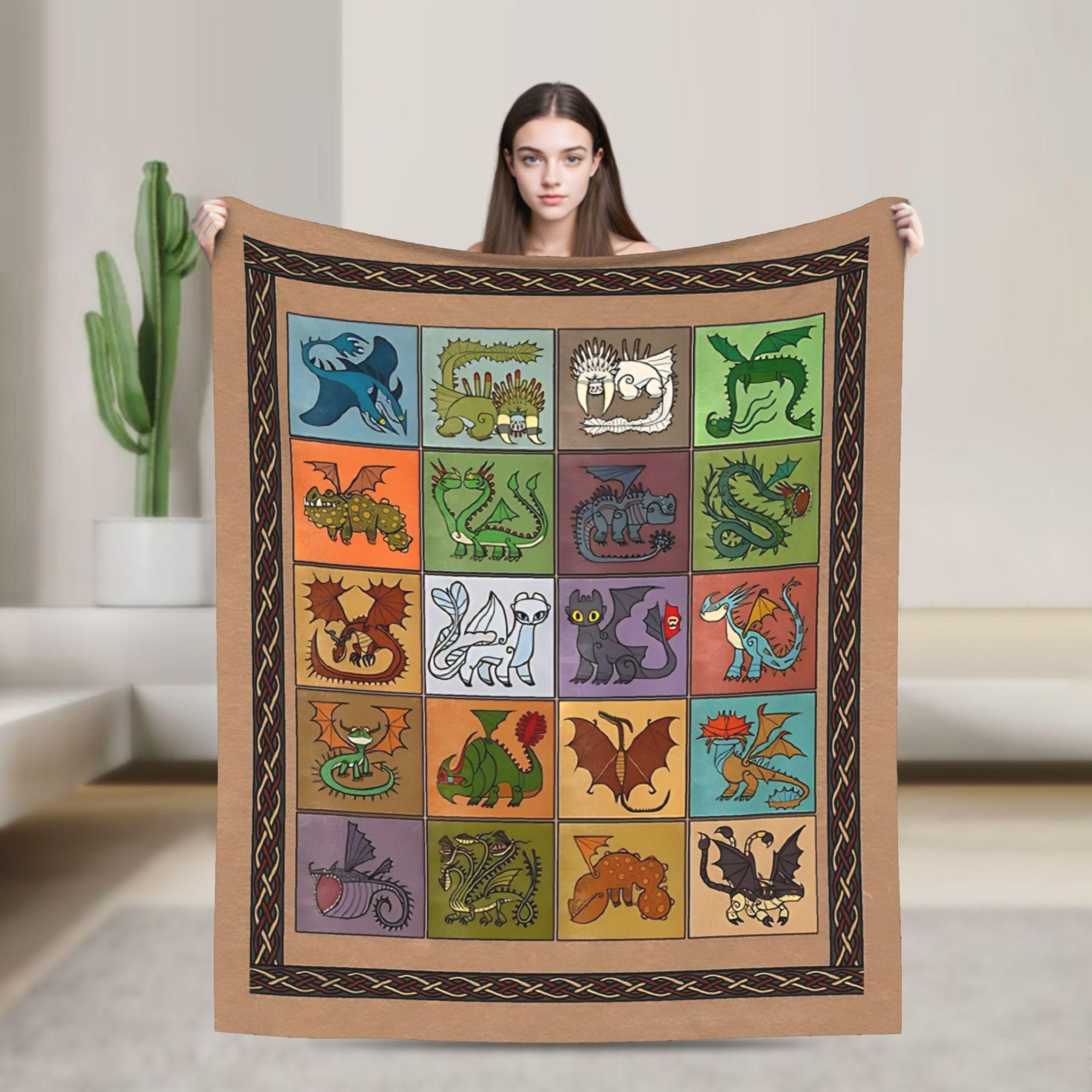 HTTYD Dragon Pattern Stylized Blanket Warm Plush Throw Blanket For Couch Chair Travel Office Flannel Bedspread Bed Cover