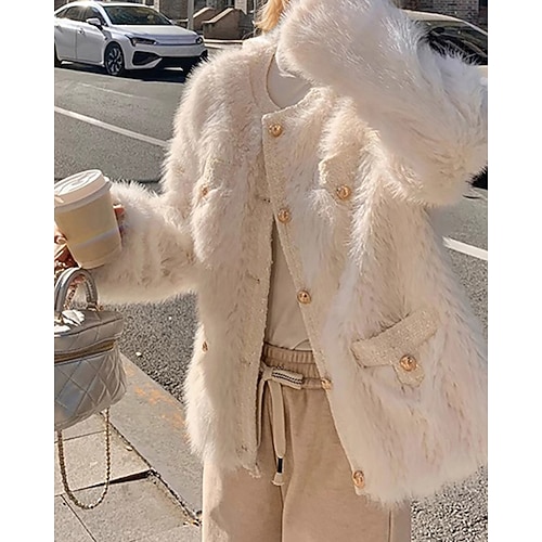 Per donna Cappotto Invernale Cappotto in Pelliccia Sintetica Caldo Confortevole Bottoni Bordo in pelliccia sintetica Attivo Moda Semplice All'aperto Vacanza Uscire Weekend Regolare Girocollo