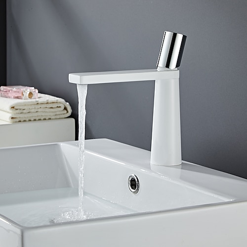 rubinetti miscelatori lavabo, rubinetto lavabo bagno montato sul piano, maniglia singola in ottone con tubo caldo e freddo, rubinetto acqua monoforo cromato nero bianco grigio