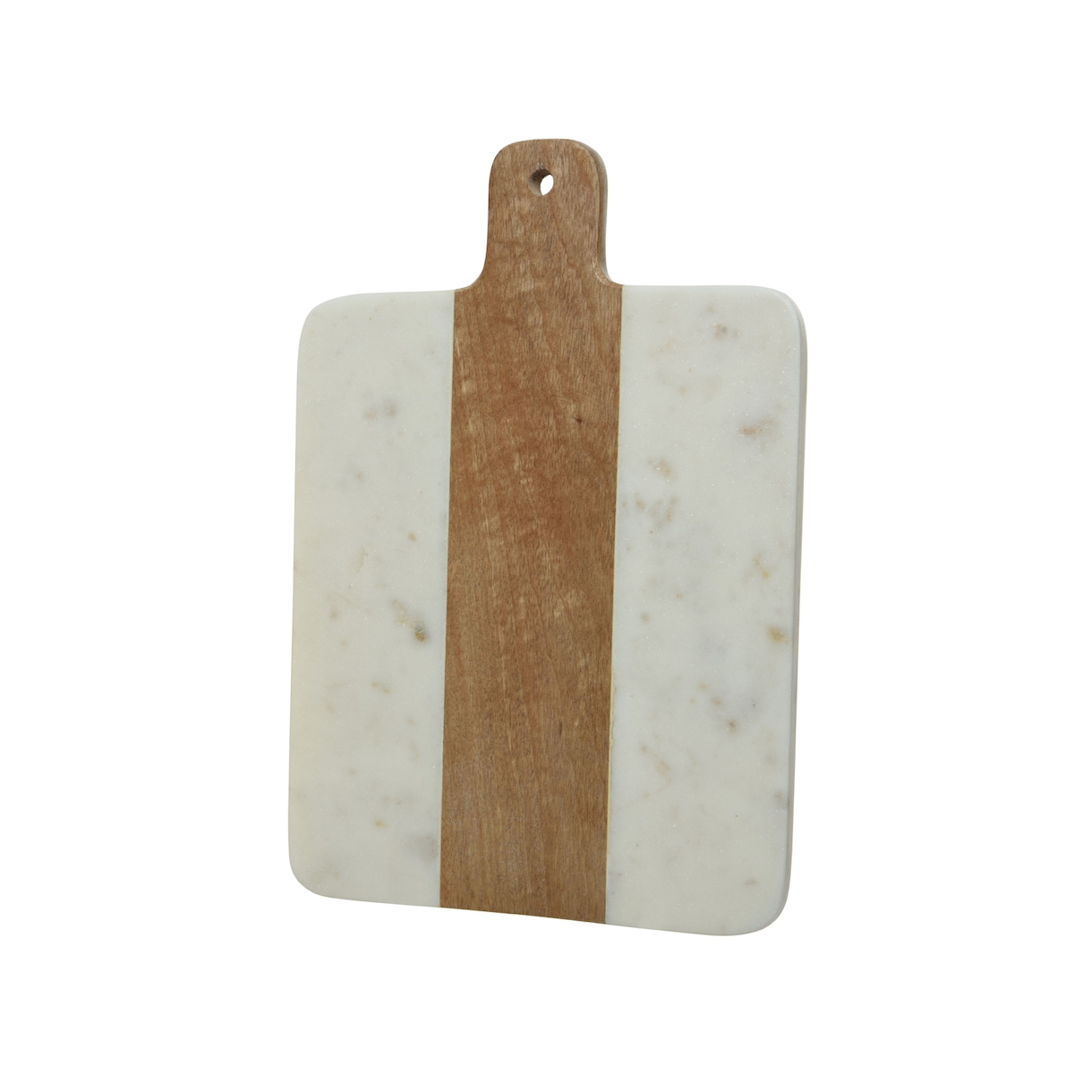 Schneidebrett Vesperbrett aus Mangoholz Marmor weiß braun Servierbrett 30cm