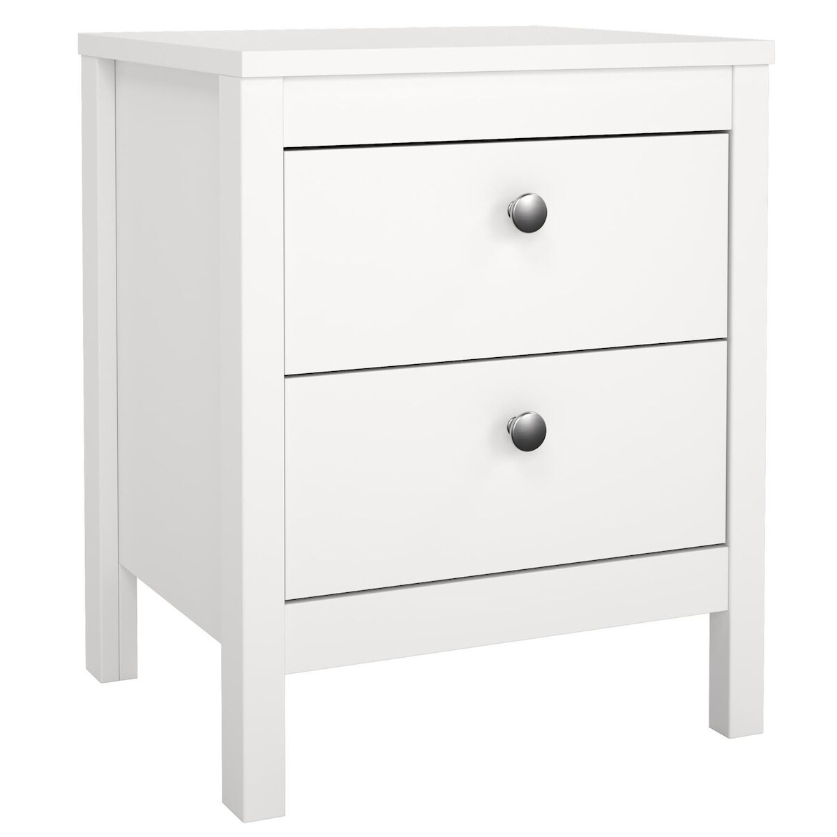 WellHome - Nachttisch mit 2 Schubladen und Metall - oder Ledergriffen in der Farbe Weiß 44 x 39 x 55 cm - Guadalquivir