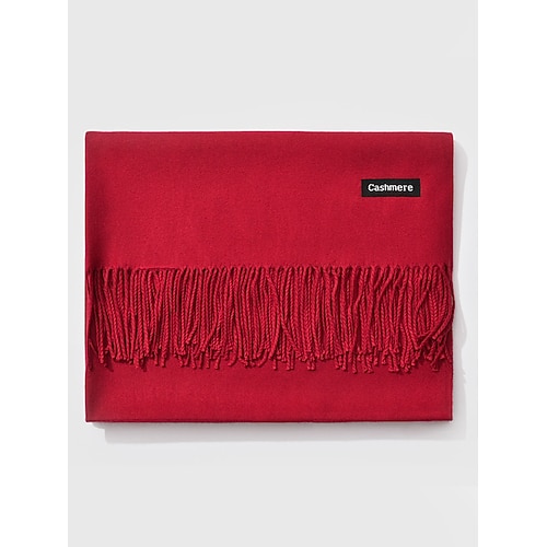 sciarpa natalizia da donna in cashmere, morbido scialle invernale in simil cashmere con nappe, calda stola tinta unita per le feste, l'outdoor e l'uso quotidiano