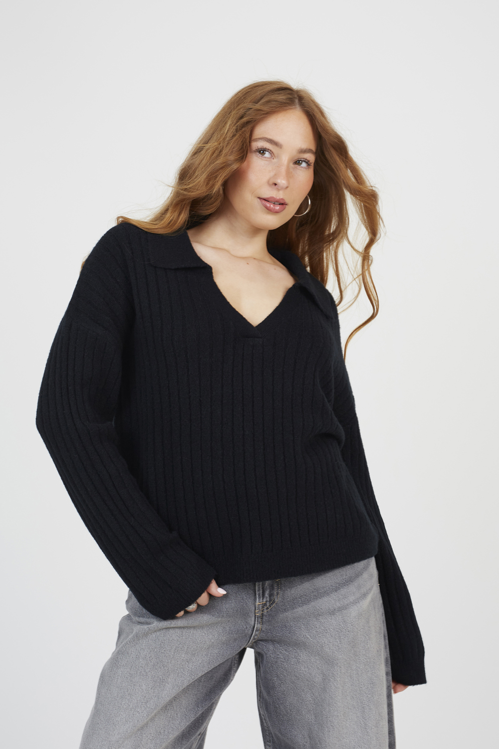 Brave Soul Womens Black Ribbed Trophy Neck Knited Jumper - Size Small | Brave Soul Sale | Discount Designer Brands