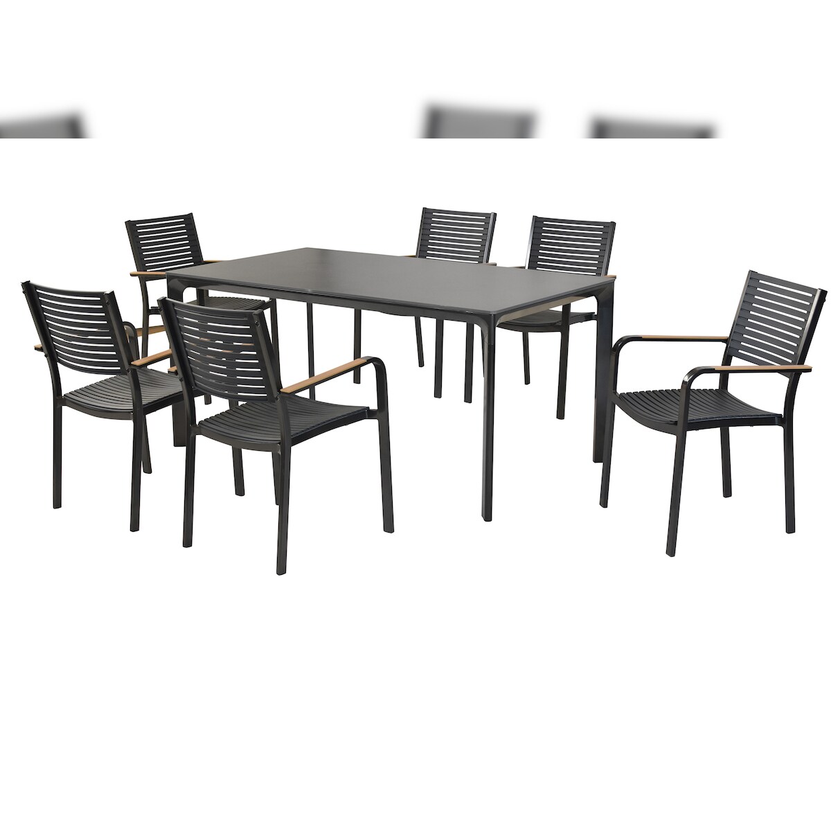 Merxx Paliano Set 7tlg., 6 Stapelsessel, 1 Tisch 160 x 90 cm, Stahl