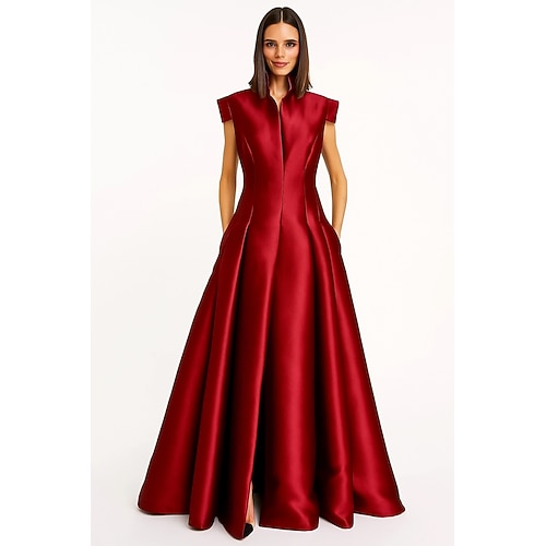 Linea ad A Lunghezza al pavimento Abito da Sera Da principessa Abito formale Elegante Manica Corta Regina Anna Matrimonio Formale Tasca Raso con Tasca