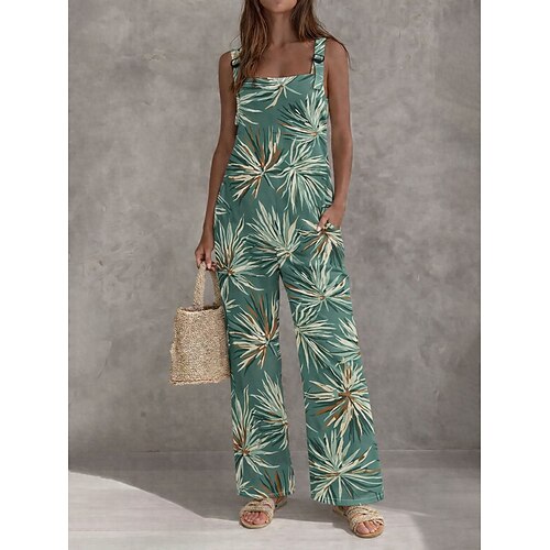 Per donna Salopette Attivo Floreale Senza Maniche Senza maniche Dritto Collo quadrato Tasca con tasca Quotidiano Spiaggia Vestibilità regolare Blu Rosso Verde Estate