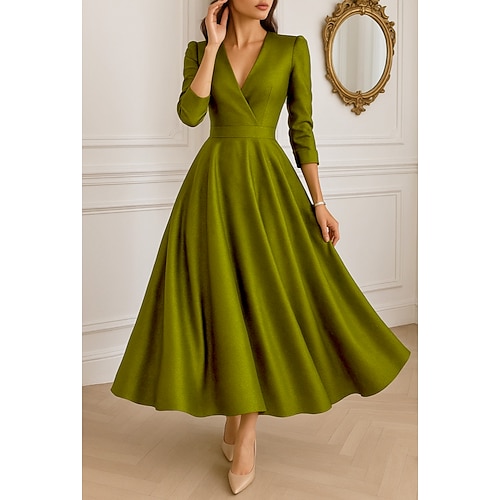 Linea ad A Lunghezza alla caviglia Abiti da Cocktail Elegante Vintage Manica 3/4 Scollo a V Formale Tasca Taffetà con Pieghe Arricciato Tasca
