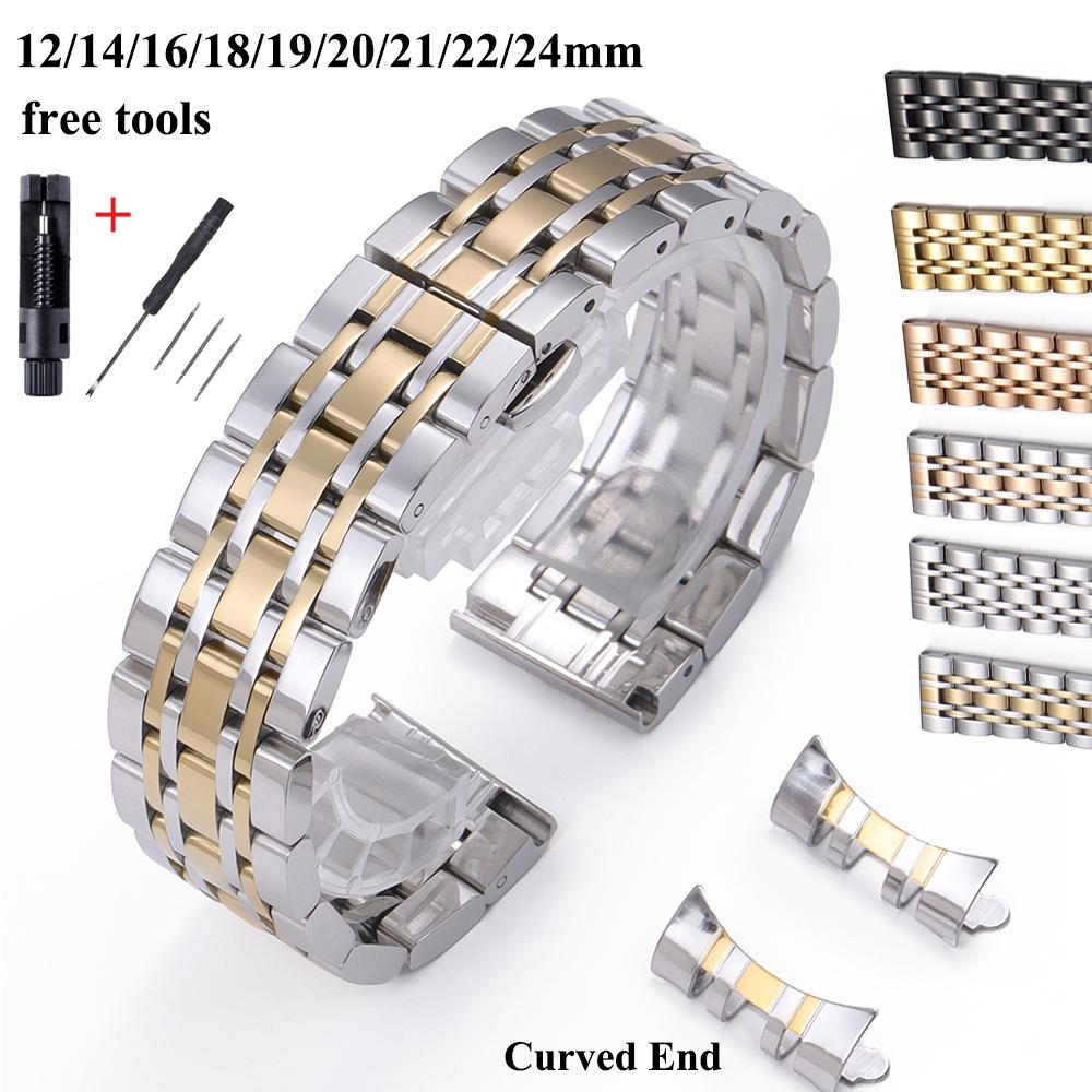 Massives Edelstahl Uhrenarmband mit gebogenem Ende 12/14/16/18/19/20/21/22/24mm Bänder für Tissot Faltschließe Universelle Armbänder