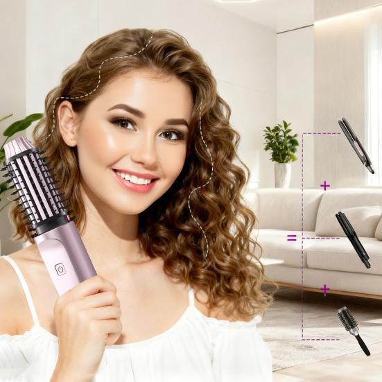 3-in-1 Lockenbürste Tragbare Schnellheizende Thermobürste USB Wiederaufladbare Reise Kabellose Beheizte Rundbürste Elektrischer Lockenstab rosa