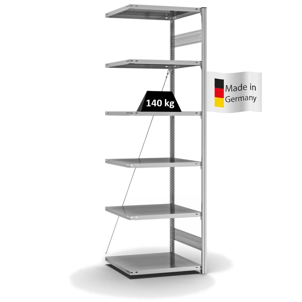 PROREGAL Fachbodenregal Stecksystem | Anbauregal | HxBxT 250x75x60cm | 6 Ebenen | Fachlast 140 kg | Einseitig nutzbar | Verzinkt