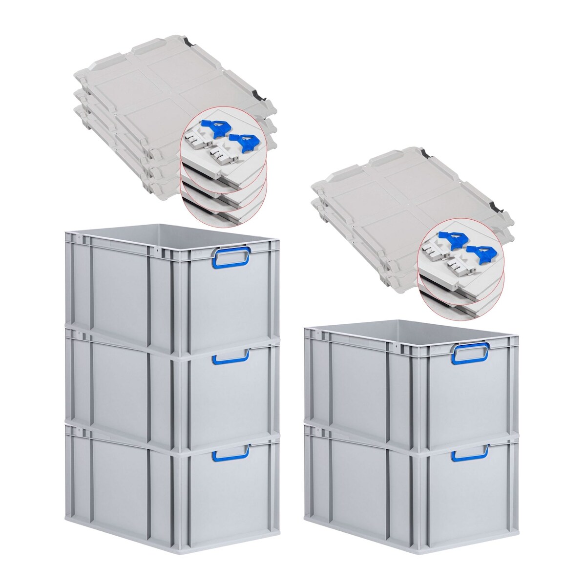 PROREGAL 5x Eurobox NextGen Color mit Scharnierdeckel & Verschlüssen | HxBxT 22x40x60cm | 65 Liter | Griffe blau geschlossen | Verstärkter Boden