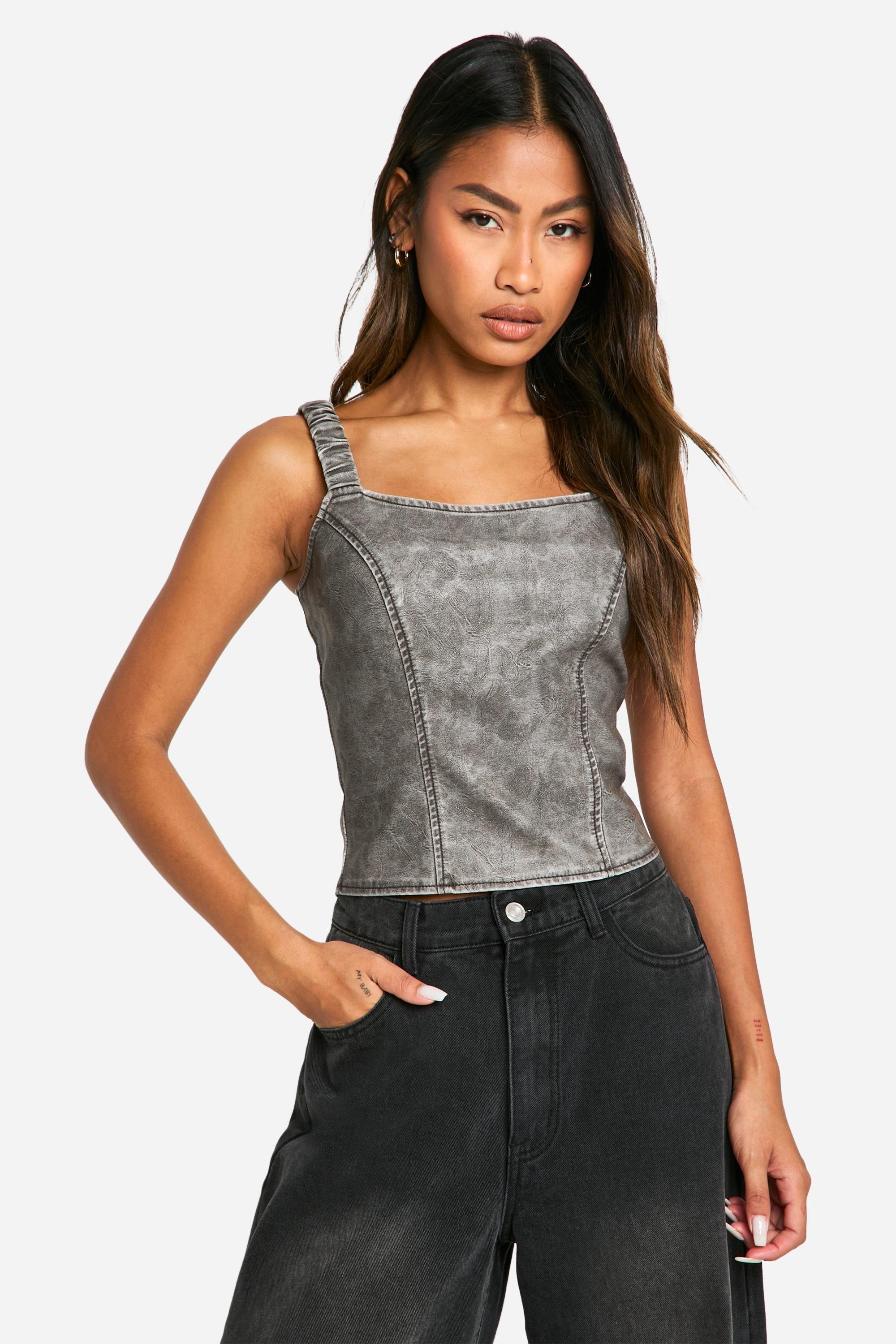 Boohoo Womens Washed Faux Leather Ruched Strap Corset - Grey - Size 10 UK | Boohoo Sale | Discount Designer Brands