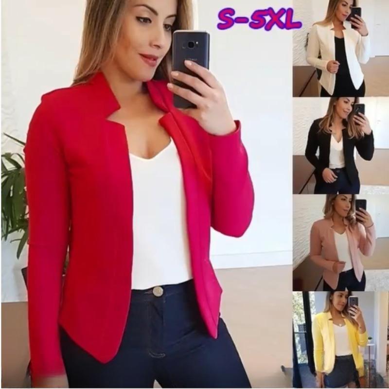 Ladies Long Sleeve Fashion Women's Clothing With Pockets Jacket Suit Tops cm white