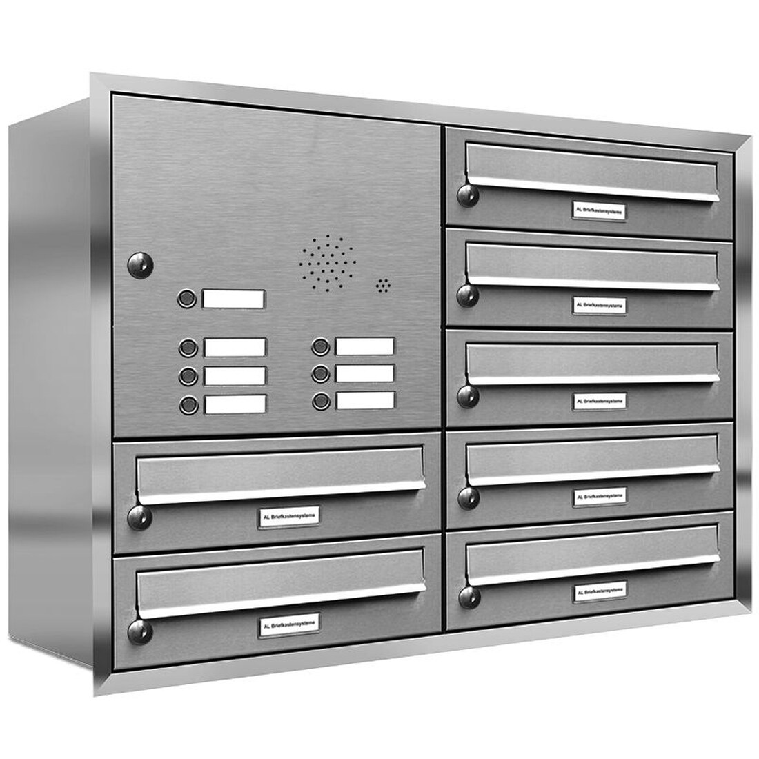 AL Briefkastensysteme 7 Fächer Premium Edelstahl Unterputz Briefkasten Anlage mit Klingeln, Post A4, robust, wetterfest, Artikelnummer: 132T7U2KS
