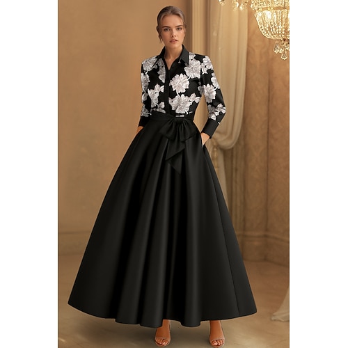 Linea ad A Lunghezza al pavimento Lunghezza alla caviglia Abito da Sera Da principessa Abito formale Elegante Scintillante Setoso Manica Lunga Colletto a Camicia Matrimonio Formale Tasca Raso Raso