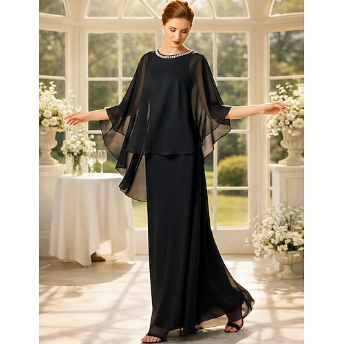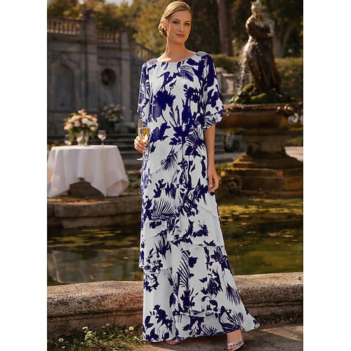 Linea ad A Abito Lunghezza al pavimento Abito da Cocktail Abito da invitata a nozze Abito da cerimonia per signora Mezza Manica Scollo a Barca Elegante Vintage Formale Chiffon Scialli con Fiori 3D