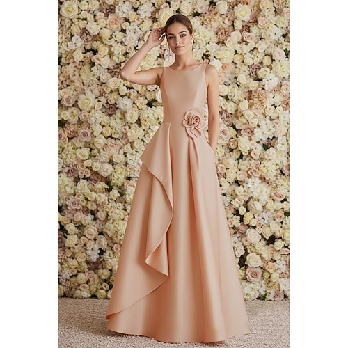 Linea ad A Lunghezza al pavimento Abito da invitata a nozze Abito Formale Abito da sera Abito da cerimonia per signora Senza Maniche Scollo a Barca Elegante Vintage Formale Ospite di nozze Raso con