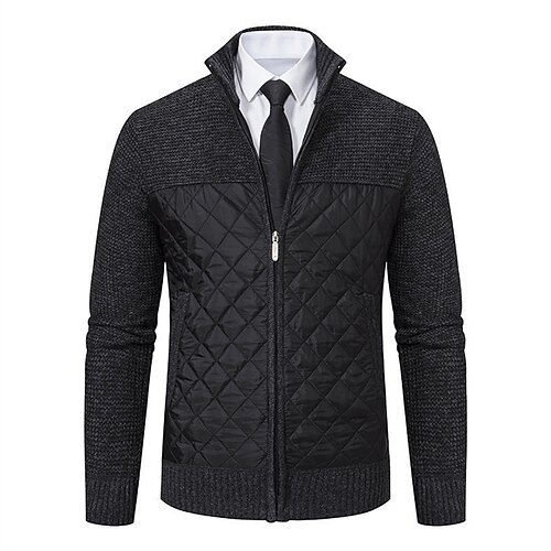 Per uomo Cardigan Maglione Corto Maglione con Zip Maglione a maglia A Coste Maglia Top Regolari Patchwork Tasca Semplice Collo alla coreana Moda Classico Vacanza Abbigliamento quotidiano Abbigliamento
